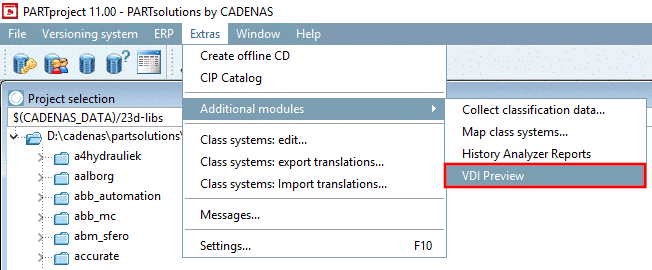 Still before building a catalog, in the Extras menu under Additional modules -> VDI Preview, you have the possibility to have a look on geometry and structure and to check if there are any errors.