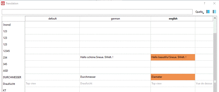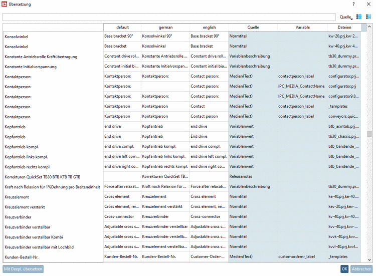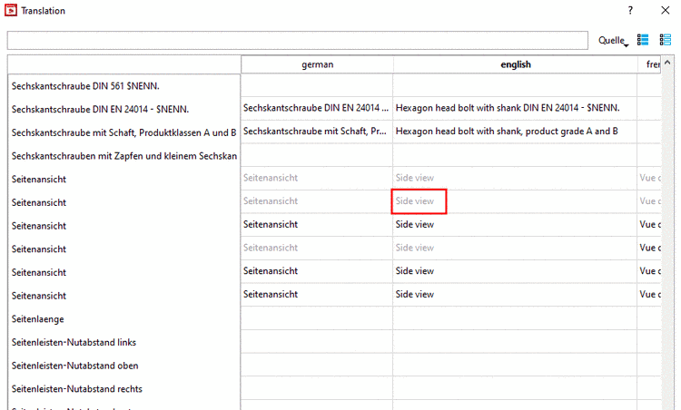 The expressions in light grey lettering are existing translations which are already used in other directories and which PARTproject has "noted". They are simply suggestions and may either be overwritten or entered permanently with context menu command Accept suggestion (for a single field) or Use suggestions (for a whole column).