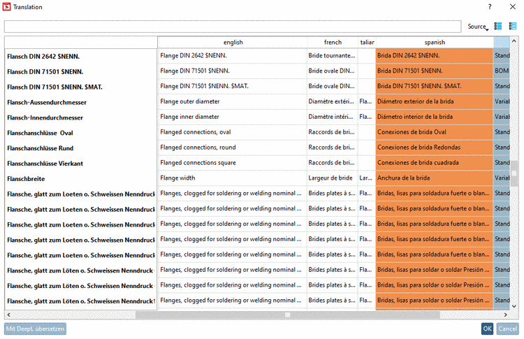 In the far right column the respective term's Source is displayed like Standard name, BOM name, Project value, etc.