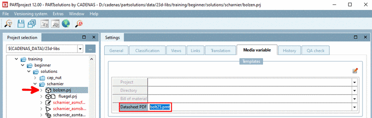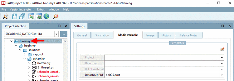 Initial situation: A datasheet PDF template, which has been created for a test project in PARTtemplateDesigner, shall be transmitted to the catalog root element.