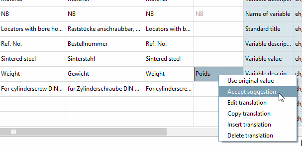 The suggestions (gray text in cells) can then be adopted on other pages using the context menu command Adopt suggestion [Accept suggestion].
