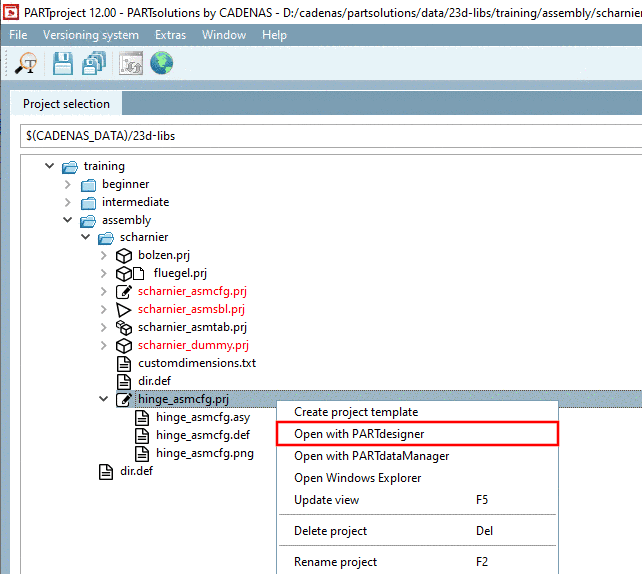 _asmcfg.prj" in its name.In the context menu of the assembly configuration, click on the command Open with PARTdesigner.