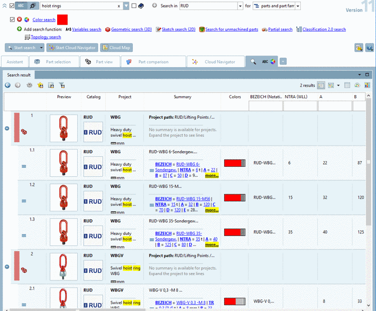 -> The more you specify the more variable filters are displayed (at screws e.g. nominal thread diameter and length, etc.).