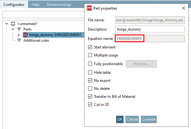 Equation name: ...for internal referencing of the part. Located in parenthesis behind description.
