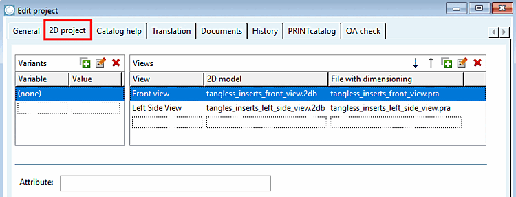 If you do not want the same dimensioning file to be used for all component characteristics, you can define variants here. This allows you to assign specific views and/or models to different variable values.