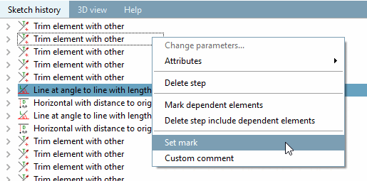 • The sketch history [Sketch history] can be edited. This means, for example, that you can remove superfluous steps.
