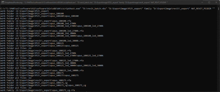 "C:\PARTsol\software\V12\software\bin\x86\64\cscripthost.exe" "D:\revit_batch.vbs""D:\ExportImage\PS3\_export" family "D:\ExportImage\revit\_export" NAT_REVIT_PS3DIR ""