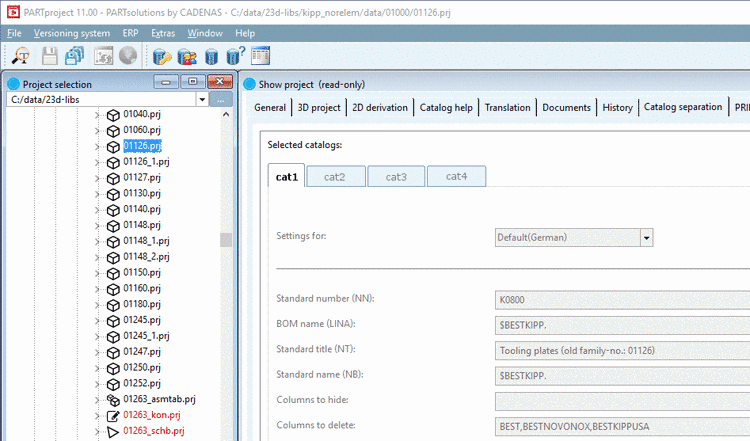 Once selecting a project on the left, settings of the chosen subcatalog (depending on selected tab) are displayed on the right, which are executed during the separation process.