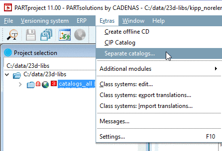 Once all settings are made, in the Extras menu, click on Separate catalogs....