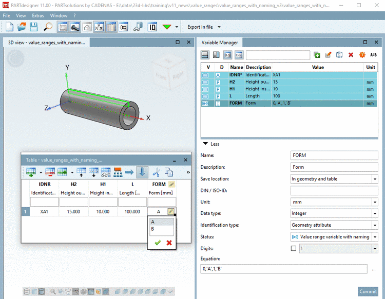 Just as well you can test in the PARTdataManager. Table view and value selection is identical as in the PARTdesigner.