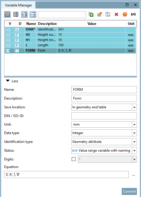 [94] General on the procedure can be found under Section 7.8.2, “ Add new variable” and Section 7.8.9, “ Variable Manager - The individual parameters”.