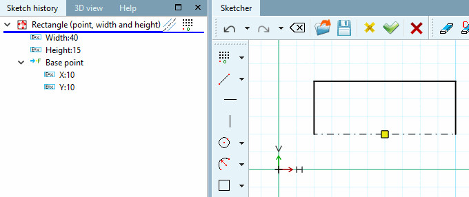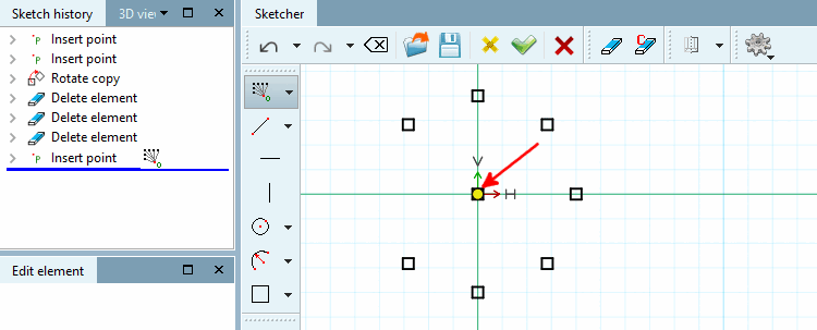 The completely positioned point is identified in the sketch by a square frame.
