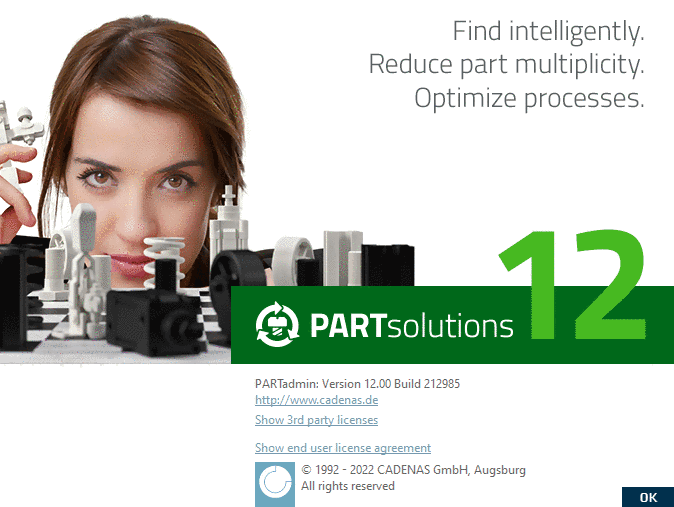 Via Help (?) menu -> About (or F8 key), open the CADENAS information window. Among others, there you will find information about installed versions and supplier information.