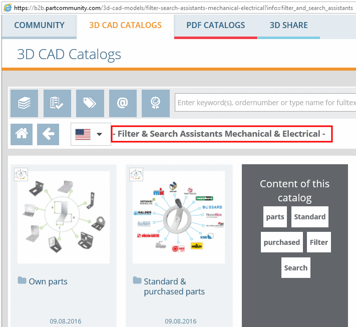 • Filter and search assistants on the B2B portal (created CADENAS internally with eCATALOGsolutions with Project type Classification Search)