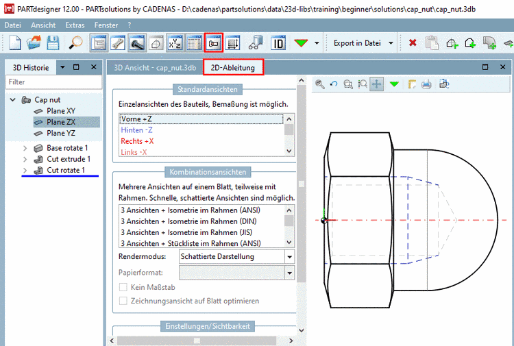 At Content, choose the option Accept current 2D derivation and confirm with .