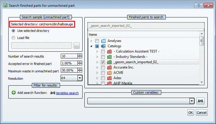 -> The respective row is transferred as root node with name and characteristic. A Geometric Search is automatically processed.