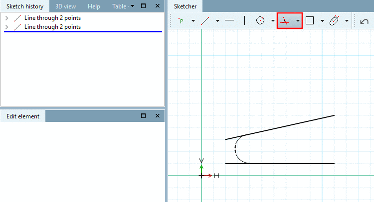 -> The radius is displayed in the docking window Edit element. Changes at the lines have to be directly made in the Sketch history, if needed.