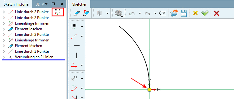 -> In the 3D History, the sketch is now displayed as guide curve.