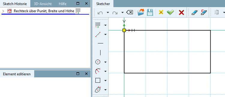-> On the tabbed page Sweep base, now under Start sketch, a green checkmark is shown.