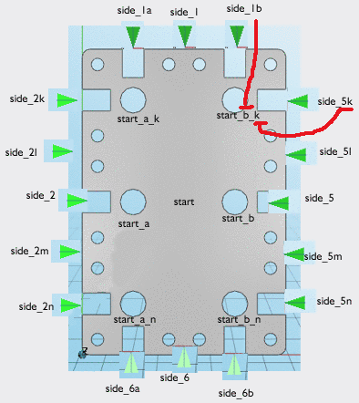 The connection point in the center of the section is called start, the others are listed as start_a, start_b etc.