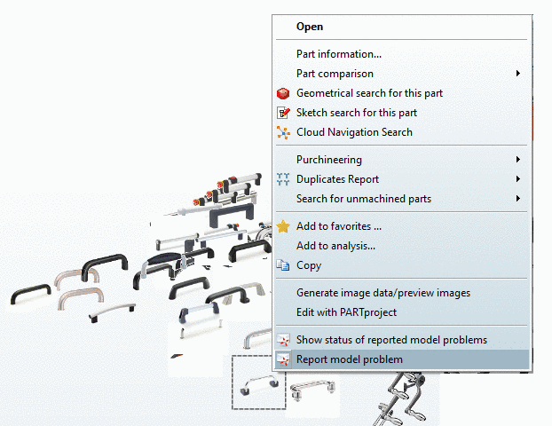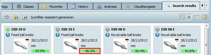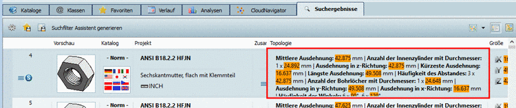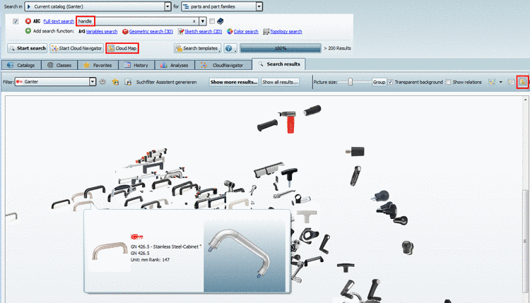 If the results in the Cloud Navigator are zoomed out in order to keep the overview, then to display the part information enlarged is helpful. Move the mouse cursor over the desired part.