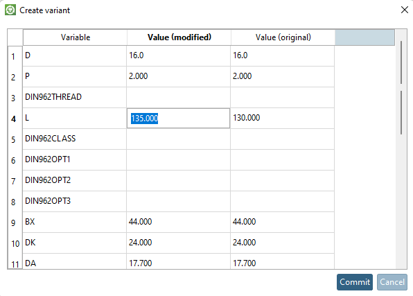 -> As a result, the created variant is also displayed in the PARTdataManager displayed.