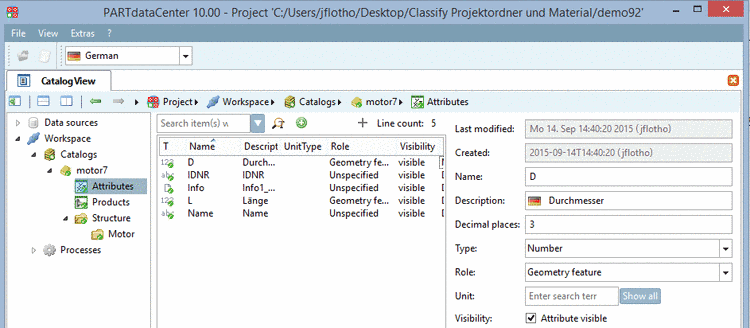 The Attributes category contains ALL attributes of the catalog. However, after the export back to PARTsolutions only attributes which have been assigned to products are component of the catalog. | |