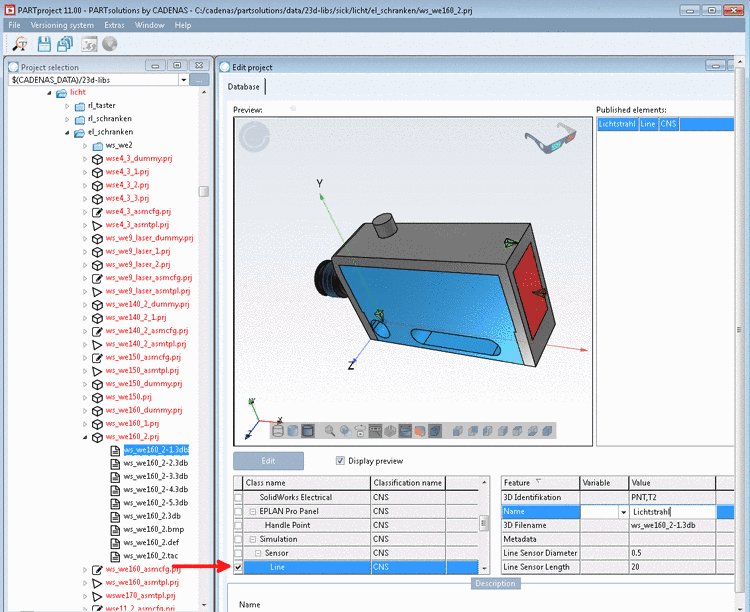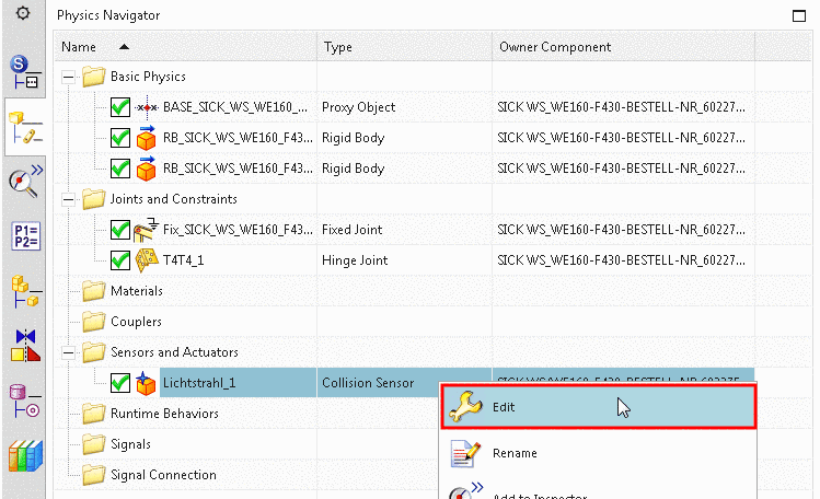 In the following you can see how to classify a Sensor and to check the classification in the Mechatronics Concept Designer.