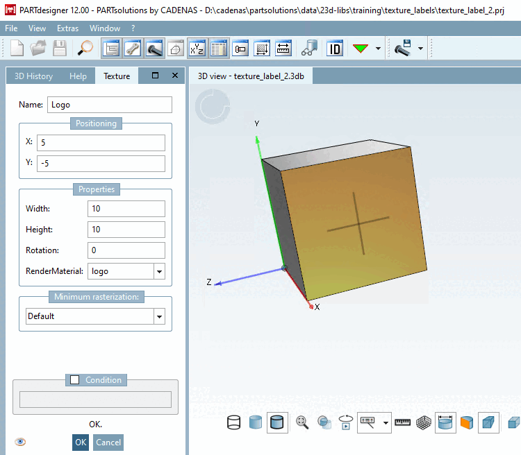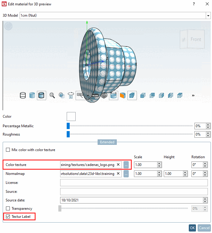 Under Color texture, select the image path to the image that is to be used as the label and activate the Texture label checkbox.
