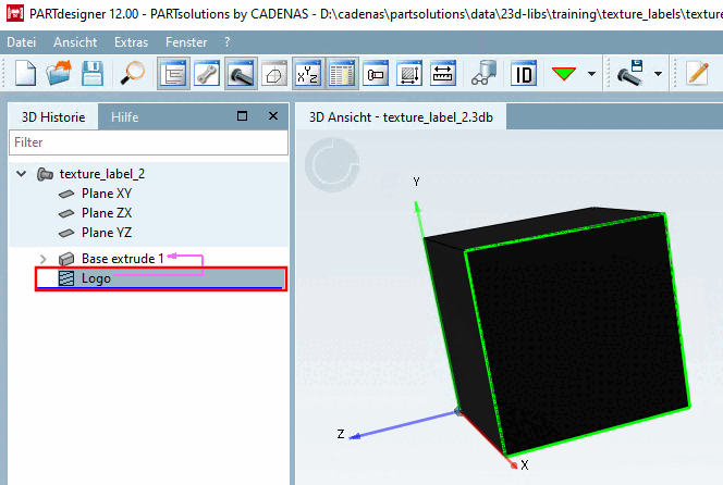 Define the desired texture labels [Texture label] in PARTproject under Manage render materials [Maintain render materials].