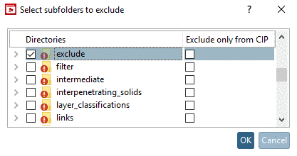 If the checkbox in the column Exclude only from CIP is enabled in addition, the respective directory is uploaded to the publication server (PARTcommunity) and only excluded from the CIP.
