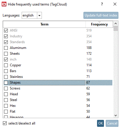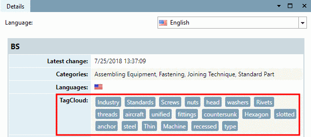 With the help of the TagCloud, the search functionality in PARTdataManager is enhanced for each catalog.