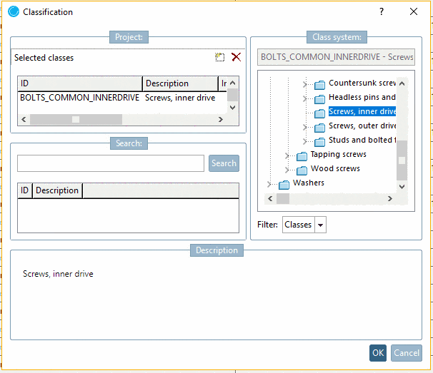 In the line Classification (PCon), open the dialog box Classification via double-click on the search button ....