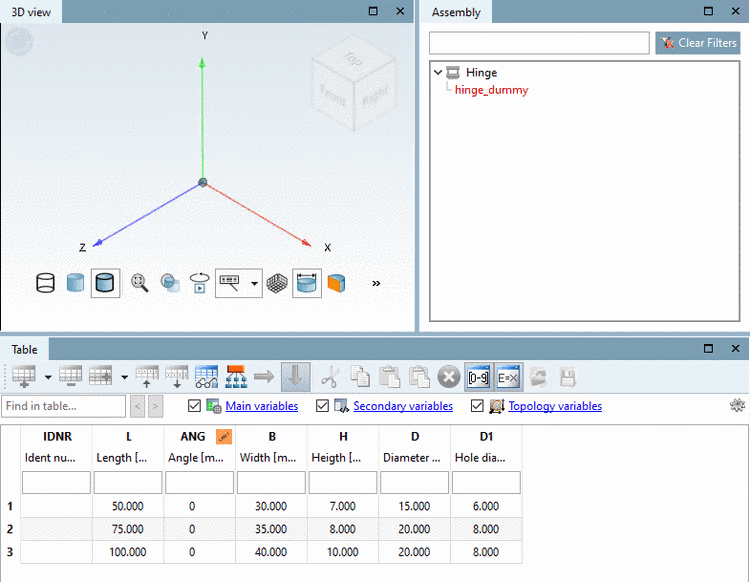 -> The configuration is displayed with table. (Dummy table will be used as assembly table later.)