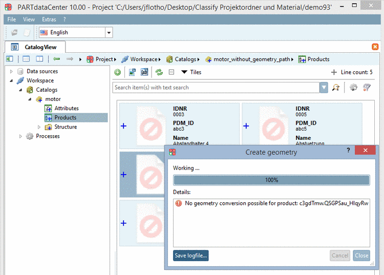 Select the respective option (here exemplified preview image and geometry (.zjv) shall be created only for the selected product) and confirm by clicking on .