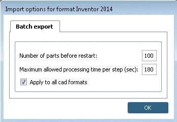 The dialog box for batch export options opens.