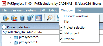 Project selection with context menu