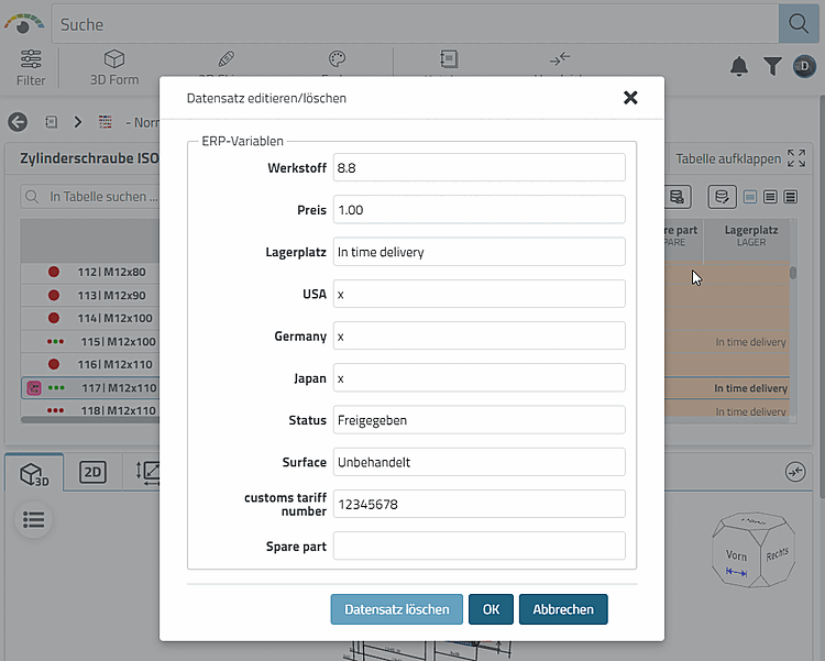The function is used to change LinkDB values such as material. This applies regardless of whether it is a standard line or a variant. A value added to the characteristic attribute table (variant) cannot be changed with this function.