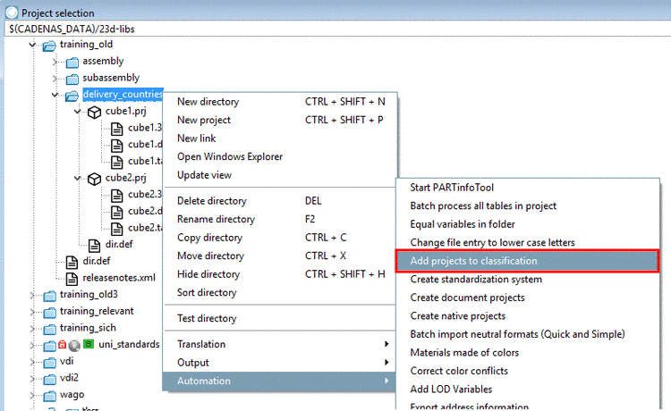 Select a directory where its projects shall get the same classification and under Automation, click on the context menu command Add projects to classification.