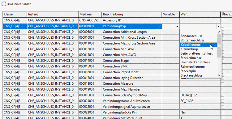 CADENAS supports a certain subset of connection properties (class Electrical Connection), which are defined under eCl@ss ADVANCED. This subset can be enhanced anytime on request.