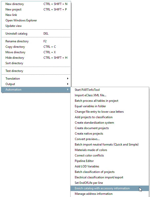 In PARTproject, select the desired directory and click on the command Enrich the catalog with accessory information.