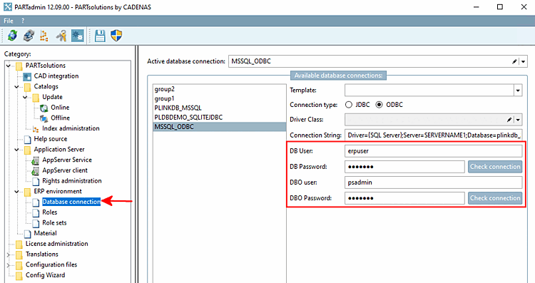 The connection can be checked in PARTadmin under Database connection.