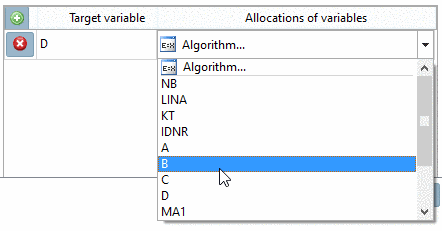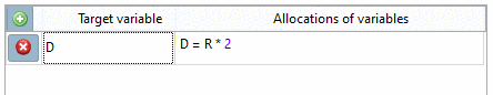 The new variable is selected as target variable, e.g. D and in the second column an algorithm is provided: D = R * 2.