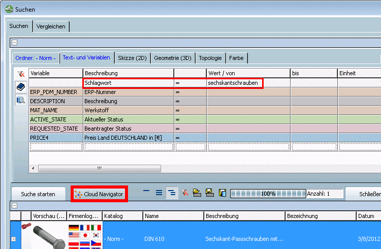For comparison: You will get the same result on the Classes index page for DIN 6912, when you call up the Cloud Navigator Search.