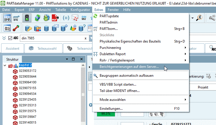 Basic requirement for the use of this function is the operation of an adequate database such as MS-SQL or Oracle database for example.