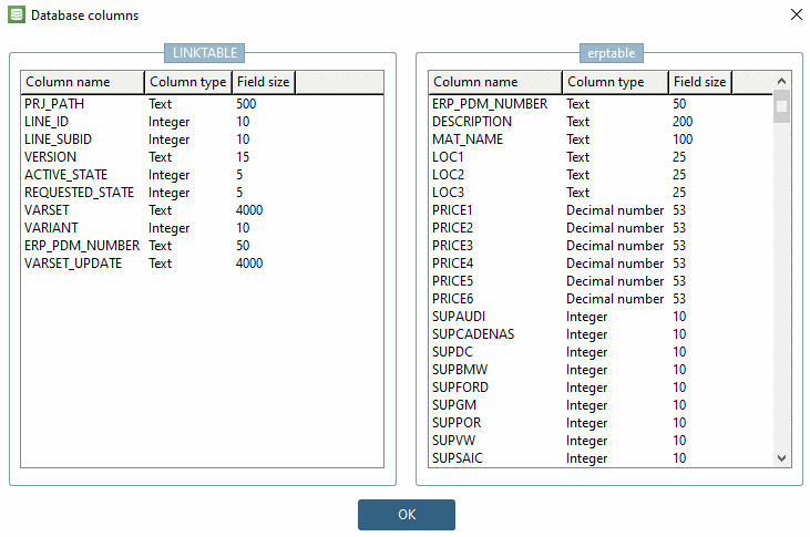 You can have the columns in the LINKTABLE and ERPTABLE displayed.