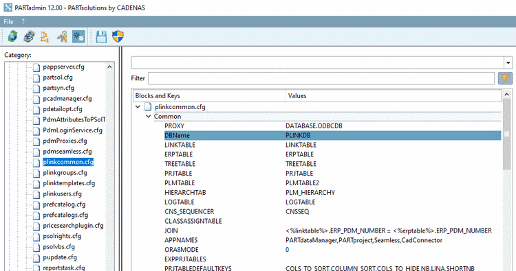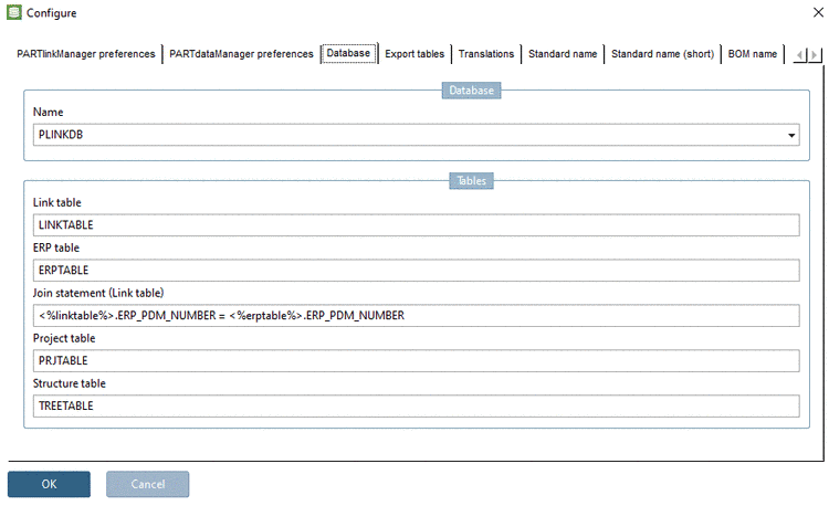 PARTlinkManager -> Extras menu -> Configure ERP environment -> tabbed page Database -> Database -> Name