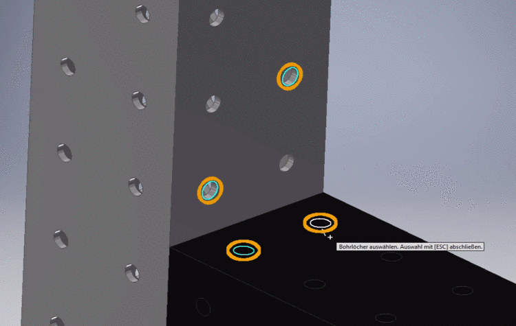 Ignore cylinder lengths:When looking for a fitting counterpart for a hole or a pin, it may be advantageous not to include the length attribute for the search. In such a case use the search template Ignore cylinder lengths.