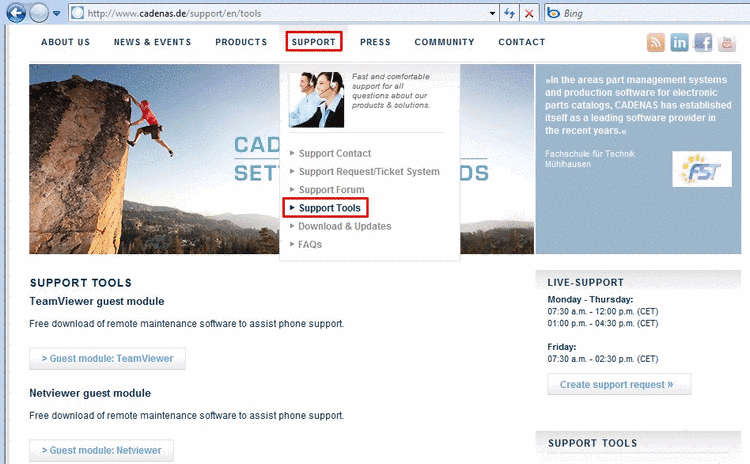 • You can download the client version free of charge in different languages under "http://www.cadenas.de -> Support -> Supporttools".