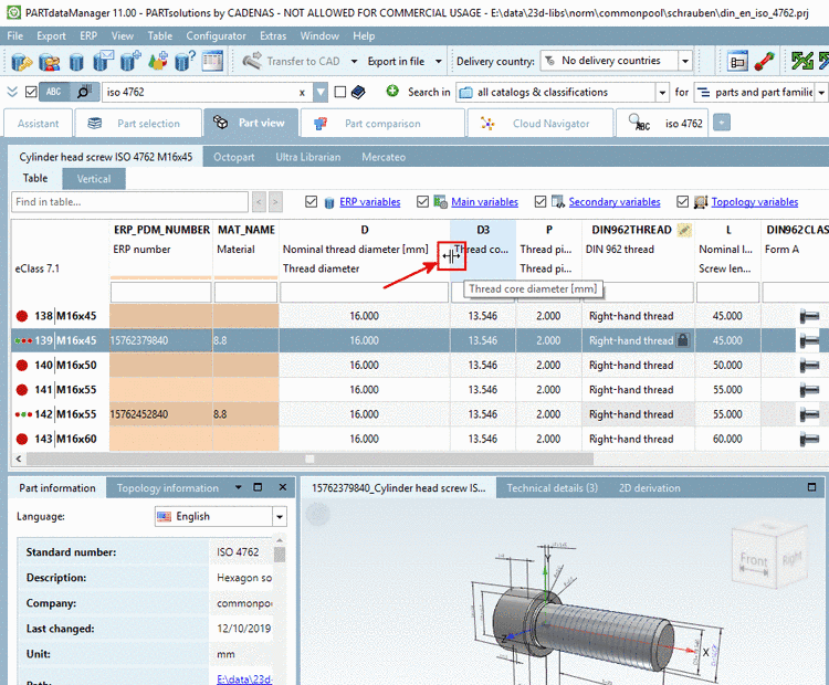 External results can be opened but all the actions like exporting to CAD, etc. are disabled. If parts found in this way shall be used, either download the respective part from the portal or install the respective catalog subsequently via PARTadmin locally.